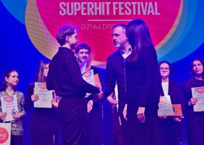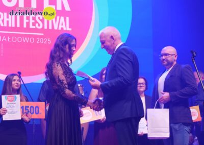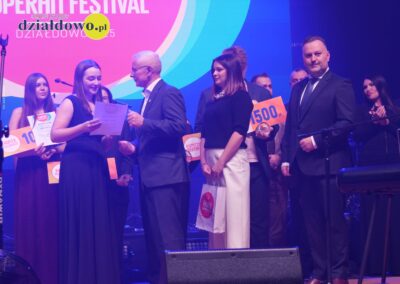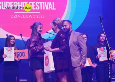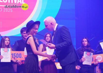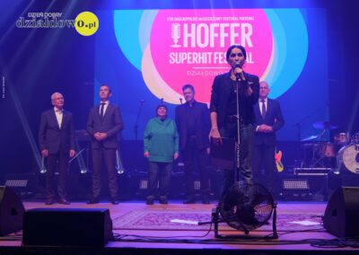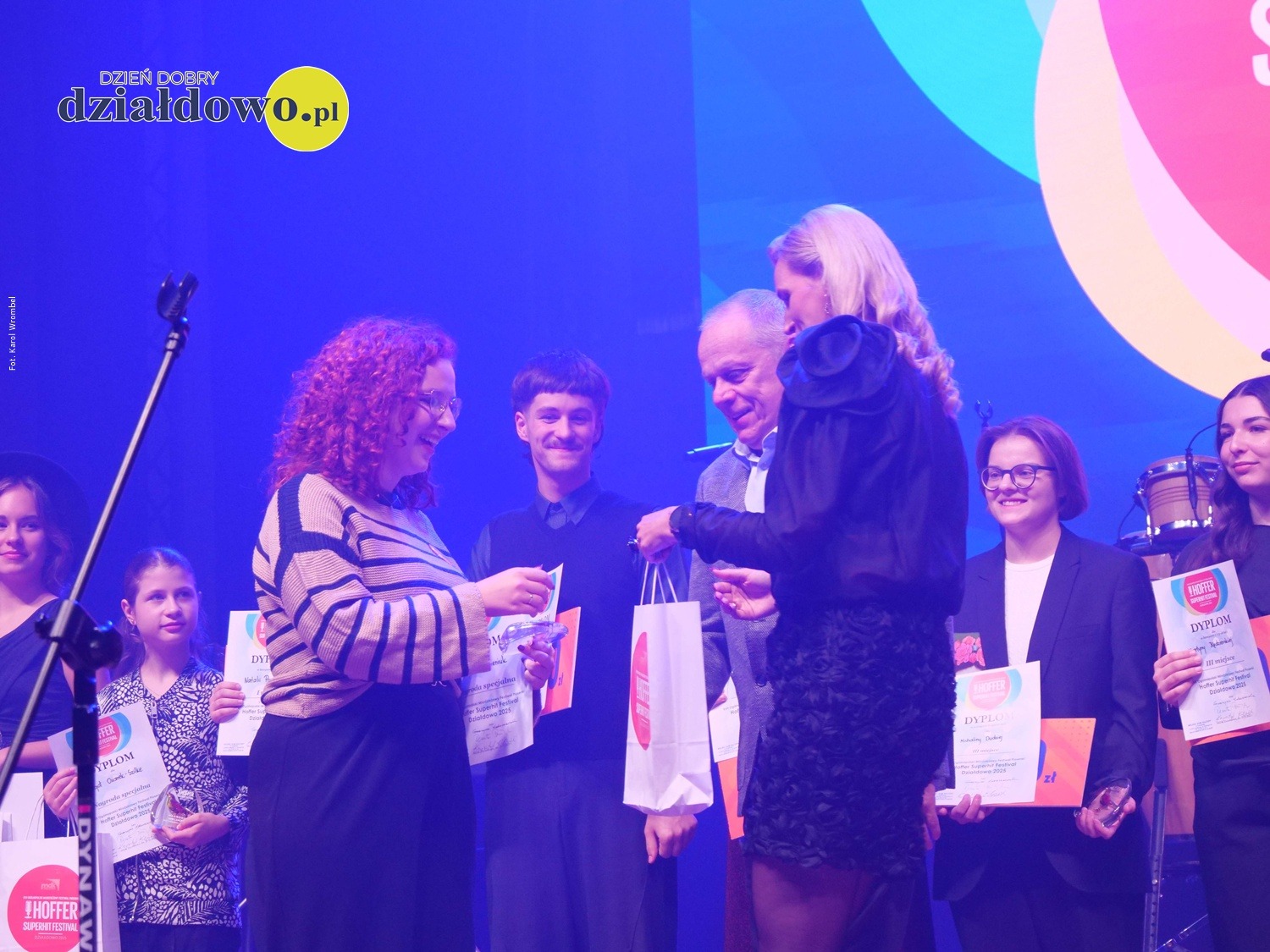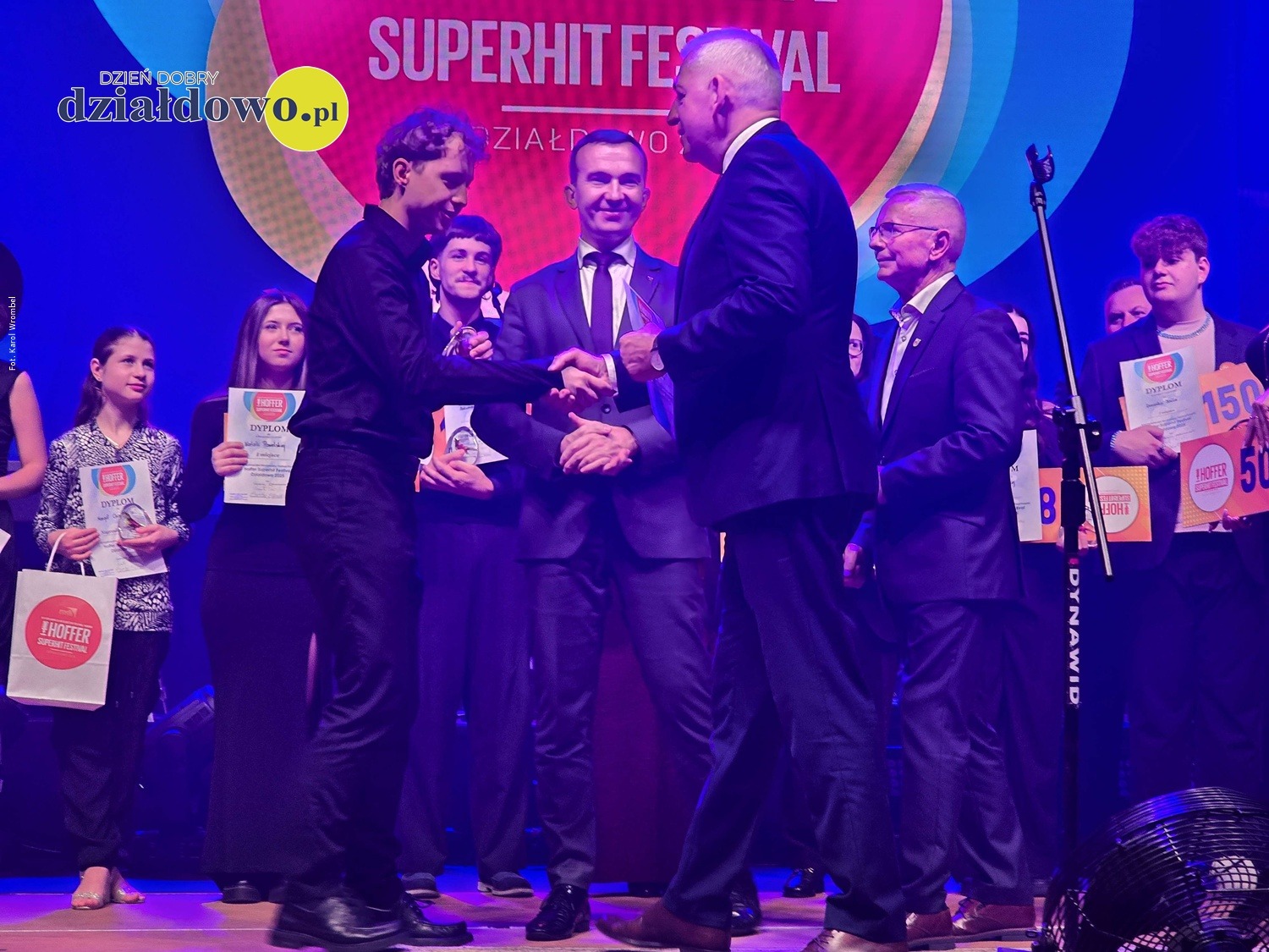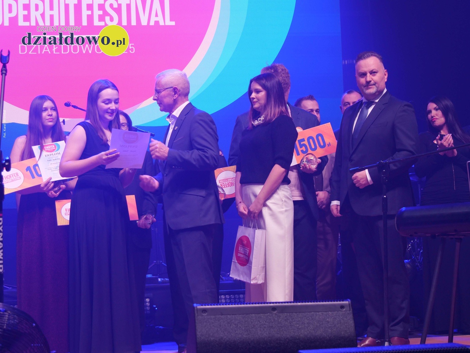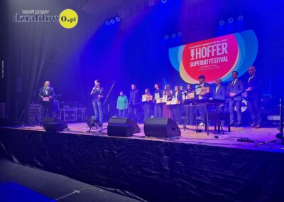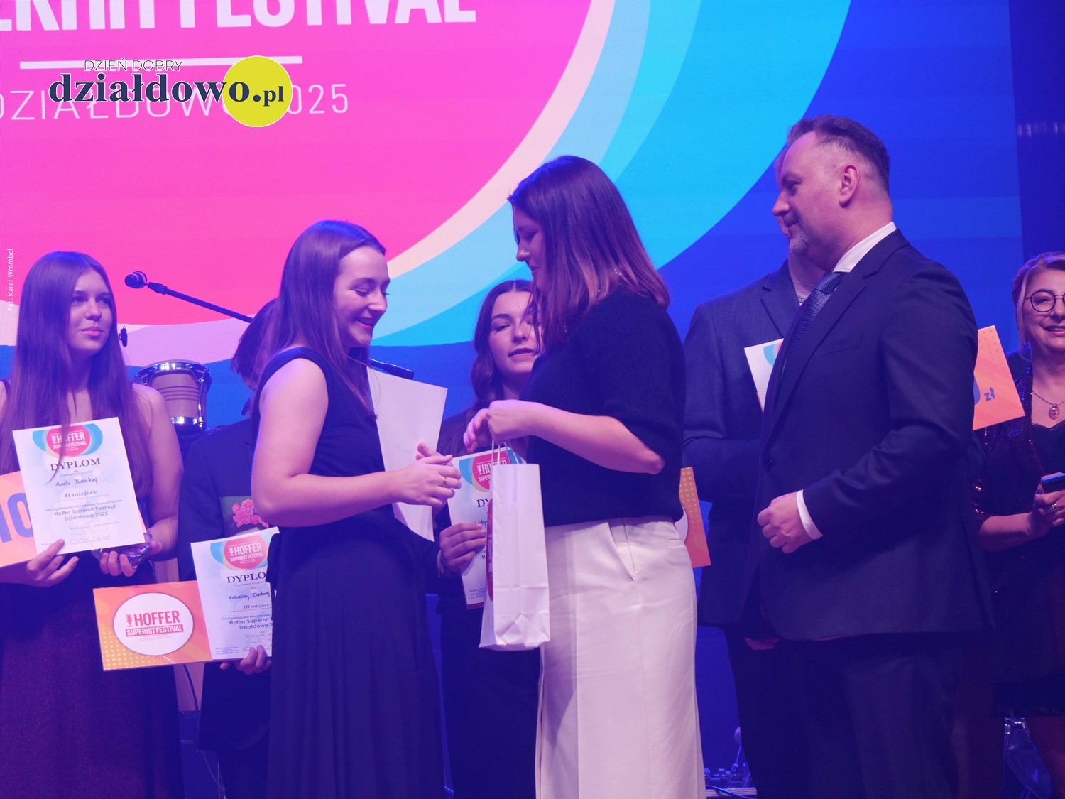 (Na zdjęciu głównym pamiątkowa fotografia laureatów XVII Ogólnopolskiego Młodzieżowego Festiwalu Piosenki Hoffer Superhit Festival Działdowo 2025 wraz z jurorami, patronami i sponsorami)